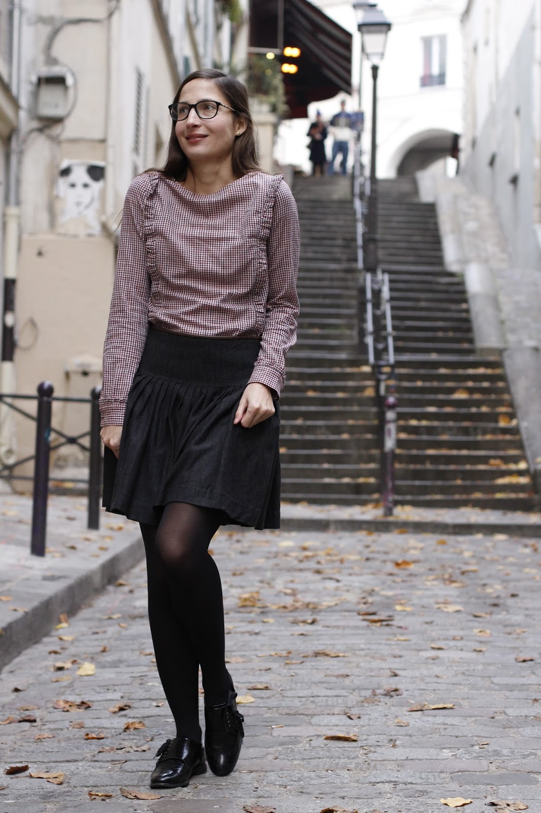 Et pour la jupe, encore une jupe plissée !! Et oui, rien à faire, je les aime trop! Mais, attendez, je n'en avais pas encore de grise alors j'avais le droit, non ?